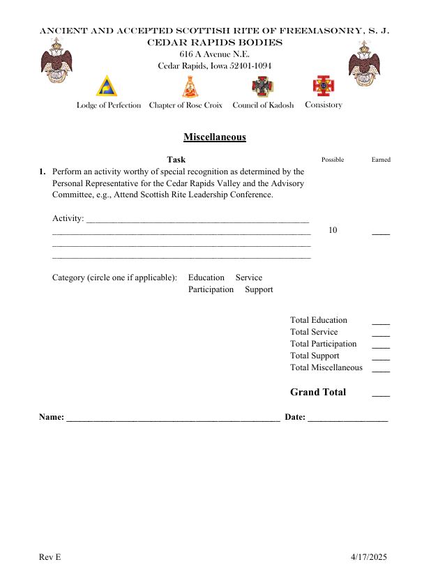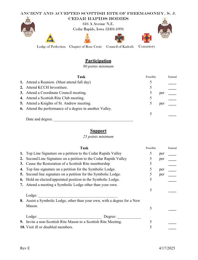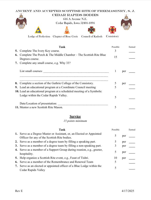 copyright 2026 - Cedar Rapids Scottish Rite - All rights reserved.